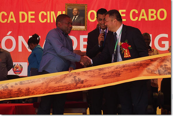 At the president's speech at the opening ceremony, the smooth operation of the project to congratulate China enterprises expressed support in Mozambique industrial development. Del, chairman of the group announced in the speech donated 1000 tons of cement for the development of social welfare undertakings of the provincial government of canada.