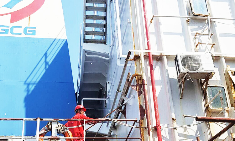 This repair not only requires the ship to dock for underwater hull and equipment maintenance, but also a large number of self-repairing projects.Among them, projects such as rust-removing painting, lifeboat repair and maintenance of various equipment on deck are outdoor work.In the hot weather, it is difficult to repair the ship. Meanwhile the ship must be inspected by the professional staff of Suzhou Shipping Bureau.
